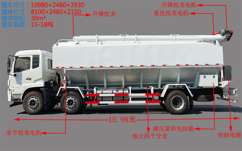 2.絞龍電機均采用國產優質電機,在粉塵、雨林、腐蝕性消毒水、惡劣的行駛環境下,保證散裝飼料車的良好運行。