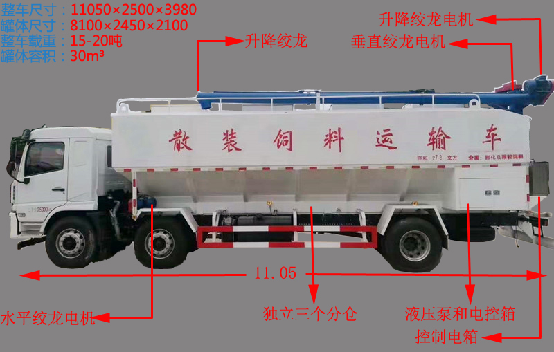 (4)料罐容積30-35方,4個獨立倉,實載:豬料 17-19噸,雞料19-21噸
