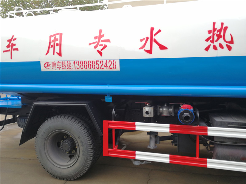 送熱水車圖片 價格 配置 拉熱水車是什么樣的?我公司生產(chǎn)的多利卡10噸灑水車選用的是武漢鋼鐵廠生產(chǎn)的Q235國標(biāo)碳鋼板,10噸灑水車罐體厚度為4mm,封頭為5mm,并采用機(jī)械焊接,強(qiáng)度更高;